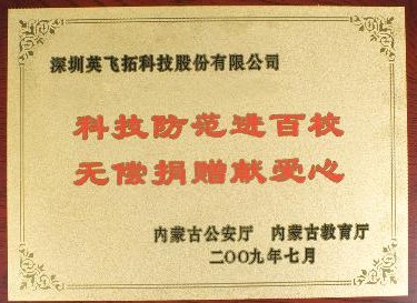 2009年7月6日上午,内蒙古展博会暨“科技防范进百校”活动捐赠启动仪式在呼和浩特市隆重举行。这次活动由内蒙古自治区公安厅、教育厅牵头,中国公共安全杂志社和深圳市安防行业协会发起倡议,主要通过社会安防企业和公司无偿捐赠安防设备和设施的方式,在中小学校建成视频监控与报警系统等科技防范系统。英飞拓作为“科技防范进百校”活动无偿捐赠企业,应邀出席此次仪式。