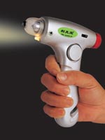 利克宝还有应急照明供应功能。通过按下一个安装在手柄上部的照明开关按钮,配置在端头罩杯下部的灯泡即发出亮光照明。