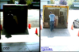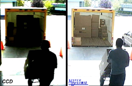 从上述图中看出,CCD 摄像机受光线变化影响非常大,无法表现出搬运工和集装箱内货物特征。Pixim 摄像机从始至终可以清晰记录装货过程和集装箱内货物状态。