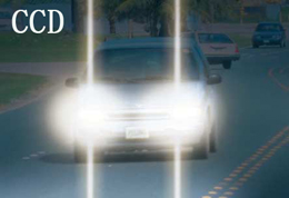Pixim芯片的核心技术是在每一个像素里模拟信号到的数字信号转换ADC。也就是在准确的捕捉点上,光信号被转化成数字信号。这样做的好处是从模拟信号到ADC 转化过程中,像素间没有串扰和没有信号损失。这也意味着噪波大大降低了和形成一个超级动态范围,这样就避免了垂直光斑的产生。池上广播级摄像机低垂直光斑达到-135dB,是所有广播级摄像机这项指标最好的。下面图片是池上 ISD-A10——基于池上低垂直光斑技术和Pixim技术摄像机和普通CCD 摄像机拍摄车灯时低垂直光斑效果图。