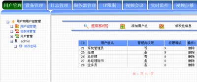 系统管理员可以针对每个用户进行分组,每个组的用户今后将享有不同的权限。如下图: