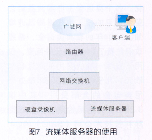 虽然网络监控能使监控工作在任何时候、任何地点均能进行,但是网络的带宽不足、网络线路的不稳定性等常常会使得网络监控中出现图像延迟时间较长、图像帧率不够、图像画质不理想等现象。而使用如图7所承的流媒体技术,就能在保障图像相对良好的同时增大压缩比例,减少传输、存储资源的占用。