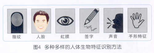 12.人体生物特征识别开始有较多实际应用。在人体生物特征识别系统中,目前分布状况是指纹识别系统占48%、脸形识别系统占14%、虹膜识别系统占10%、声音识别系统占7%、掌纹识别系统占6%。正在推出的还有掌静脉生物识别包括:手拿静脉识别(Pain vein)、手背筋脉识别(back vein)、手指静脉识别(finger vein)。未来,生物识别可能将会是多模态的应用,而不是靠单一技术进行识别。