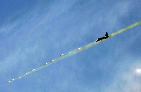 解放军空中突击分群歼轰-7战机对地面目标进行火箭弹攻击 图片来源:人民图片网