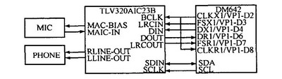 DM642具有多通道音频串行端口(McASP)和两个多通道有缓存的串口(McBSPs),但它们是与视频端口复用的,本系统中采用VP1中的McBSPs1作为与音频Codec连接的接口。