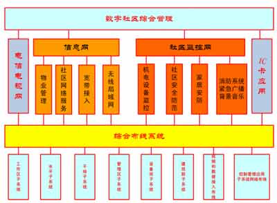 信息网系统即为社区局域网络上的各种应用,包括物业管理、社区网络服务、办公自动化、信息服务、宽带接入及无线局域网应用等。