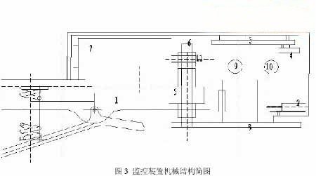 机械部分的设计采用LR260型直流电机,电压范围为DC1.2-12V,步进电机采用20BYG型,工作于DC3.0-12V,全部的机械结构简图如图3所示: