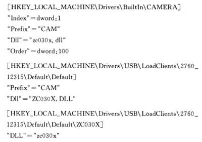 系统自动加载驱动程序时,首先要将驱动程序复制到\WINDOWS文件夹下,然后向注册表中写入摄像头的驱动信息: