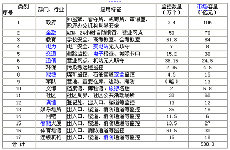 表1 视频安防监控数字录像设备产品的应用特征和市场容量