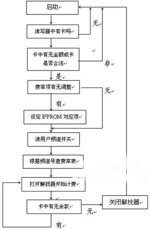 2、信息的汇总处理:由有线电视台配发的智能卡收费机上,便可收看有线电视节目,图3为智能卡收费机的工作流程图。
