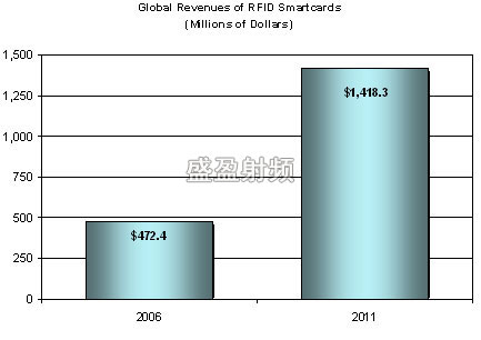 在2006年,全球无接触智能卡市场总价达到44亿7千300万美元,用户超过5亿8千300万户。投资发展公司预测到2011年每年全球无接触智能卡的收入增长率(复合年增长率)接近25%,超过14亿美元。