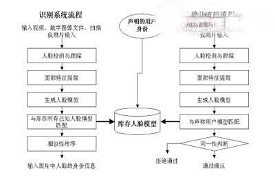 指在一组人的集合中确定鉴别对象的身份,回答“你是谁?”的问题。识别系统给出的是模板库中按相似程度(与鉴别对象的现场视频资料或照片相比较)由高到低排列的一个队列,比如说10名、50名,如果鉴别对象属于这个队列,则称之为比对成功(或者叫命中)。鉴别对象身份的最终确认需要人工的参与。这是一种“1:N”的应用。公安照片比对系统即属于此应用模式。这两种应用模式的工作流程可参见图