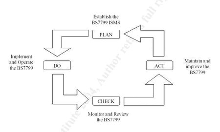 既然信息安全是一个管理过程,则对PDCA模型有适用性,结合信息安全管理相关标准BS7799(ISO17799),信息安全管理过程就是PLAN-DO-CHECK-ACT(计划-实施与部署-监控与评估-维护和改进)的循环过程。