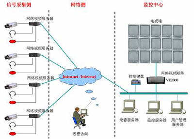 网络视频矩阵的典型应用如下图所示: