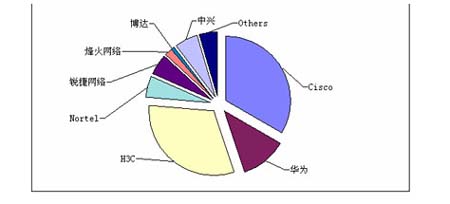 市场格局方面,H3C凭借其在企业网市场的优势已经稳坐国内市场老二的位置,是Cisco在企业网市场的主要竞争对手。在技术门槛相对较高的运营商市场华为、Juniper也不断对其发出挑战。Juniper在2008年发布了EX系列高密度交换机产品,一方面在运营商高端交换机市场给Cisco带来了新的压力,另一方面也迈出了进军行业高端市场的步伐,使中国高端交换机市场的竞争变得日趋激烈。