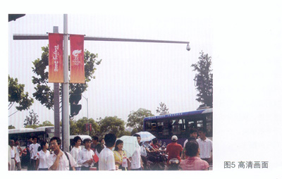 当然,现在说到的高清,指的是视频服务器的处理能力可以达到高清,也就是说视频服务器的视频输出可以达到高清的水平,但是单有高性能的视频服务器是不行的,必须具备高清的视频源和支持高清的显示设备。高清视频源在目前市场上百万像素或两百万像素以上的摄像机均可以达到高清,其接口也可以扩展为色差、HDMI等高清接口,其高清显示设备目前市场也比较成熟,高端的PC均可以支持高清的视频显示,但在CPU或显卡的处理能力有一定要求,在高分辨率的视频显示过程对CPU的负荷程度是相当高的。所以也可以用专业服务器来代替。高清晰效果见图5。