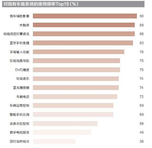 在尼尔森公司的同一项调查中,有45%的被访者在购车时会优先考虑车载智能系统,这一比例仅次于用户对安全系统、制动系统、发动机技术和变速箱技术的提及率。而在2012年尼尔森汽车电子配置需求研究中,有36%的被访者购车时会优先考虑智能系统,这一比例在两年间上升了9%。其中D级及以上车主会更多地考虑智能系统,这一比例从2012年的47%上升到了2014年的55%。