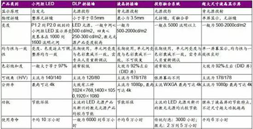 与其他主流室内大屏幕显示技术相比,小间距LED显示有以下明显优势。