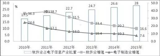 ▲图3 2010-2015年我国软件产业占电子信息产业比重变化