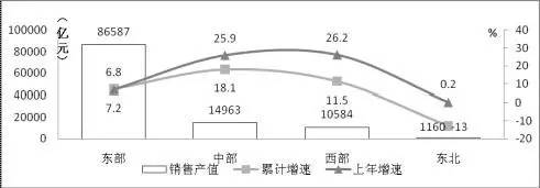 ▲图9 2015年东、中、西、东北部电子信息制造业发展态势对比
