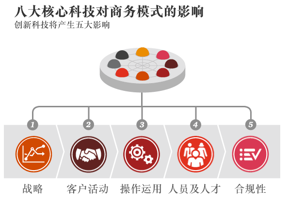 八项核心科技将从五个方面改变你的业务模式,你会收获益处,也将面临挑战,具体请参照以下要点:
