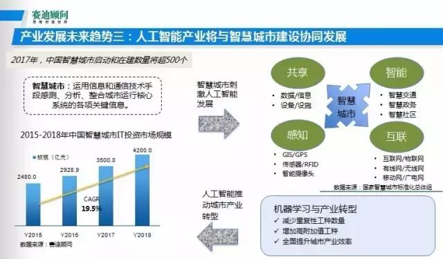 最后就是在目前中国整个市场发展,包括政府的规划中,智慧城市这个话题又重新火热起来了,很多年前建设了很多,但是发展都不是特别顺利,现在随着人工智能整个产业发展,这个动力和热潮,主要原因就是技术实力能够解决真正的刚需和真正的问题,在数据方面我们预测今年中国智慧城市建设数量超过500个,在整个智慧城市的产业定义上来讲,机器视觉领域需求量特别大的,很多的包括智慧城市的定义就是说,什么叫智慧城市,就是摄象头数量多少个,这是一个很刚性的标准,对智能,包括具备人脸识别功能摄象头需求量未来是非常大的。