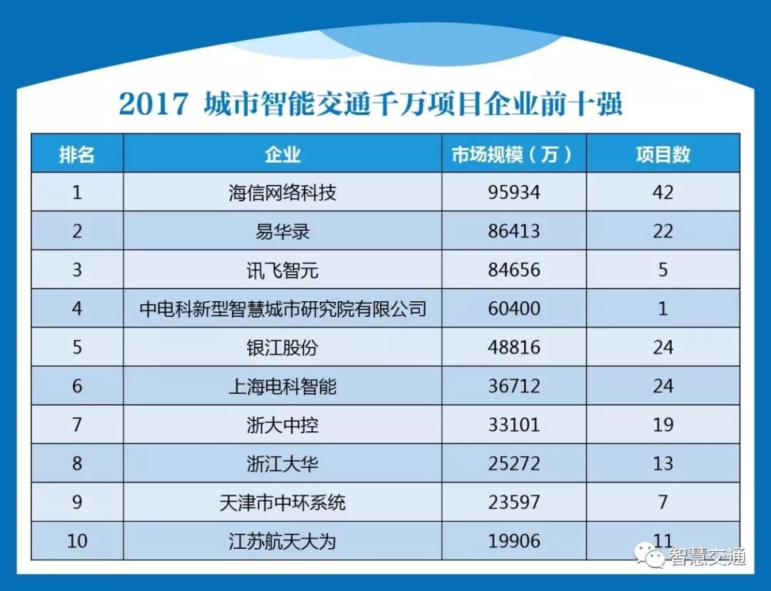 原标题 年度回顾之2017’城市智能交通市场千万项目企业前十强浅析