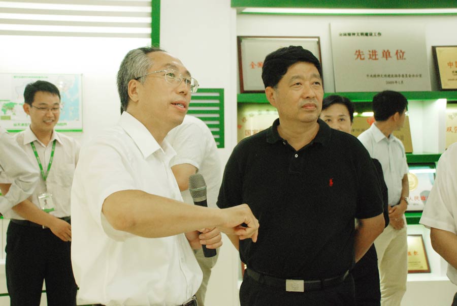 近日,公安部科技信息化局局长厉剑、副局长谭晓准,公安部一所副所长陈朝武,中国安防认证中心主任张忠孝等领导在天地伟业董事长戴林的陪同下,参观了公司展厅和员工办公区。在参观过程中,戴林董事长介绍了自己的创业经历、公司的发展历程和高新技术产品开发及行业化应用情况,并对天地伟业近年来在公安部、天津市委市政府的支持和指引下,取得的科技创新成果和市场应用情况进行了汇报。
