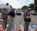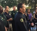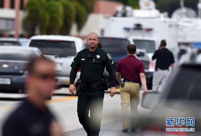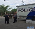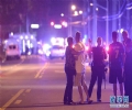 6月12日,在美国佛罗里达州奥兰多市,一名警察从枪击案现场附近经过。美国佛罗里达州奥兰多市一家夜总会12日凌晨发生枪击案,目前已造成至少50人丧生、53人受伤。