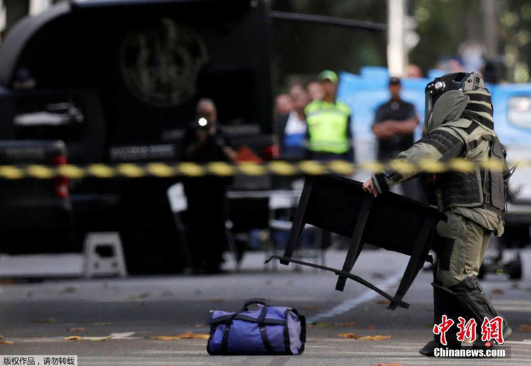 2016年7月18日,巴西里约热内卢奥运整备期再添状况,里约街头现一疑似爆炸物,侦查机器人对蓝色手提包进行检查,拆弹部队随即出动。