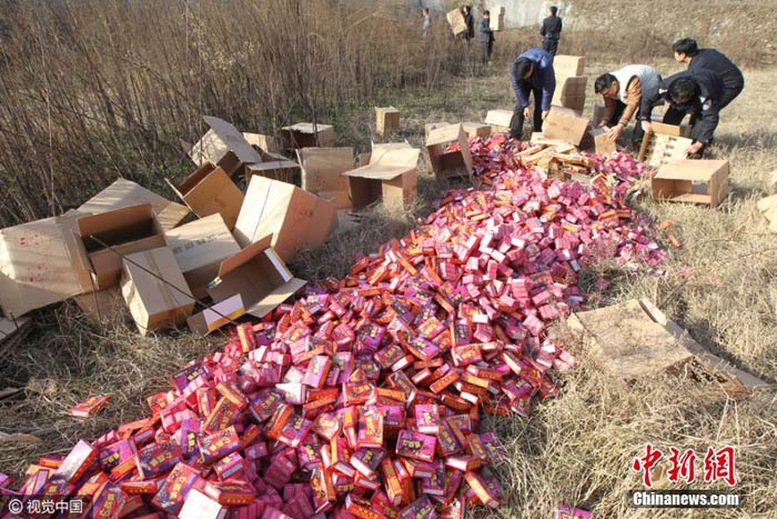 河南许昌销毁非法烟花爆竹