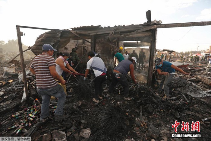 当地时间2016年12月21日,墨西哥图尔特佩克市,一烟花市场20日发生大爆炸,目前死亡人数升至36人,另有70余人有不同程度的烧伤,48人下落不明,军方和专家在现场进行调查和清理。