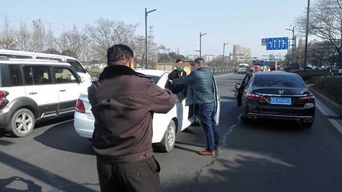 光天化日之下,江苏连云港街头,一辆轿车后座上,一名女子的手和嘴都被绿色胶带绑住,半个身子伸出车外,似乎是在向行人求救。车上男子见状,马上停车,准备将该女子强行塞入车内。来源:澎湃新闻