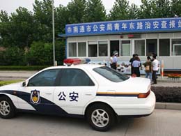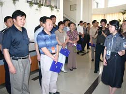 18日下午,全体代表饶有兴致地观看了南通市公安局的“公安网上实战演示”;接着全体代表分乘4辆大轿车前往南通市公安局指挥中心、青年东路治安查报站、和平桥派出所、新城桥派出所和平安建设单位富士通公司进行了现场参观考察。