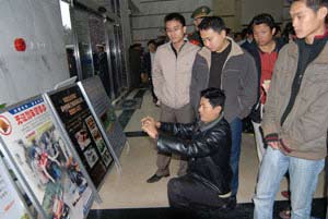 1月22日上午,海口交巡警在办公场所现场展出“警用新型移动电子警察”、“警用酒精测试仪”以及“滚动开道摩托车”等高科技设备。不少市民闻讯赶来体验。海口市交巡警支队支队长蔡军说,据不完全统计,1月22日共有500余名市民参加了交通安全宣传开放日。