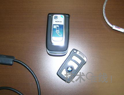 图2:支持NFC的钥匙(下)以及诺基亚制造的手机(上)。两者可进行数据通信