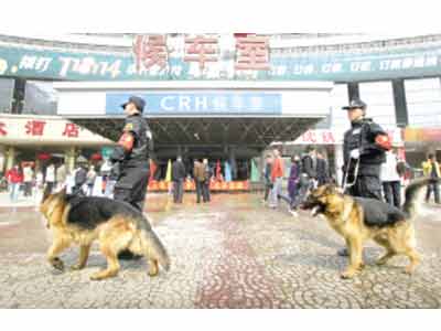 从26日起,沈阳站、沈阳北站将有警犬正式上任,配合沈阳铁路警察的工作。 警犬巡逻 旅客收获安全感 当日9时,沈阳铁路公安处北站派出所设在北站广场的宣传点正式启动,从一辆公安防爆车上走下几名警员,身边还牵着几条威风凛凛的警犬。 9时30分整,几名训导员牵着警犬在沈阳北站广场上开始正式工作。一人一犬站成纵队,来回巡视着。 训导员牵着警犬在北站广场刚一亮相,立刻引起了人们的围观。数百名旅客停止了前进的步伐,驻足观看。“真漂亮!太威风了!”一名男旅客拿出手机,上前抢拍起了镜头。 另外一名20岁初头的女孩和母亲刚刚从南二出口走出,就跑了上来。“真好,沈阳变化真大,越来越安全了!”原来,女孩名叫张天宇,刚刚从日本回国。 她的母亲告诉记者,母女俩非但没有对警犬的恐惧,反而有一种安全感。