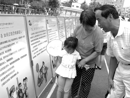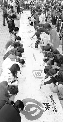沈阳市综治部门组织群众签名誓保“平安奥运”。