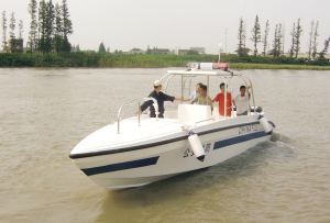“一、二、三,启航!”随着工程技术人员一声令下,4艘高速巡逻艇如离弦之箭,在新浏河上劈波斩浪,飞速前进。8月2日下午,位于太仓浏河的苏州星瑞游艇有限公司自主研发设计的高速巡逻艇下水试航成功,随后起程赴广东参与东南部沿海奥运安保任务。 “之前,我公司已有11艘快艇被调往青岛帆船赛上执行海上安保任务。”星瑞公司的负责人说,此次试航的4艘高速巡逻艇,是为广东公安边防武警部队量身定做的产品,将主要参与东南部沿海奥运安保任务。其主机采用了250匹的美国技术水星柴油机,因此驾驶起来轻便自如。 记者了解到,4艘巡逻艇中,2艘为“980”型高速巡逻艇,航行速度为50节;2艘为“1250”型高速巡逻艇,航行速度为60节。“1250”型高速巡逻艇,船体洁白,航行起来如一匹飞奔的白色骏马,主船体为钢质,甲板以上为铝合金、全焊接结构,航行速度接近中国高速船艇纪录,被业界称为“海上奔驰”。经过当天在新浏河试航水域进行试验,其船体主附件性能综合测试完全满足设计及规范要求,达到国内最高标准中国船级社水平。 苏州星瑞游艇有限公司拥有多项完整自主知识产权,其中正在制造的一艘豪华游艇,是目前世界上顶级的运动型产品,航速为32节,售价近千万元。从有关掌握的资料看,省内至今还没有生产出航速这样快、技术含量这样高的豪华游艇,全世界每年的上市量也就在300艘左右。该公司另外几种高速、机动、灵活、小型、美观、实用的巡逻艇,也都受到了公安边防武警部队及众多普通用户的赞誉和青睐。