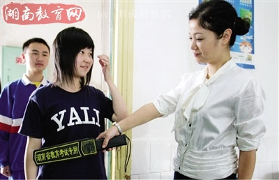 高考安检首用金属探测器 钱包橡皮擦不得入场