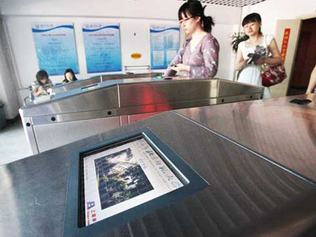 厂家工作人员介绍,这是北京首个在宿舍安装这种门禁闸机的高校。