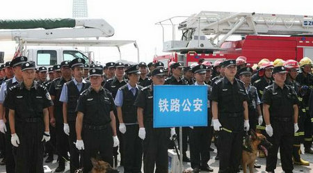 铁路公安在演习现场。
