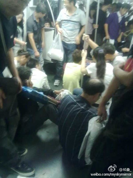 15时25分左右,记者在现场看到,事故列车仍停战离10号线老西门站站台不远的地方。站台上,有不少乘客坐着,正在处理伤口。