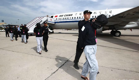 记者了解到,为依法打击处理犯罪分子,公安部与外交部、民航局、海关总署和国家质检总局等部门积极协调,派出增援警力前往印尼、柬埔寨、菲律宾和老挝,将境外抓获的犯罪嫌疑人分4批押解回国。今天中国警方从印尼顺利押解回北京的45名犯罪嫌疑人是第一批。下午2点,第二批60名犯罪嫌疑人被中国警方从柬埔寨押解回厦门。