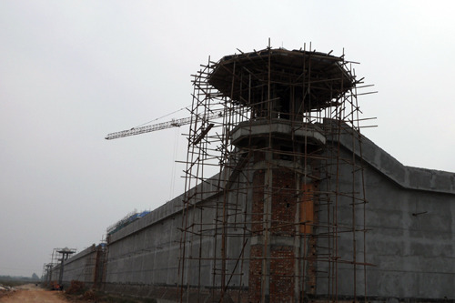 9月29日,深州监狱的新建监狱围墙上还未布设电网。