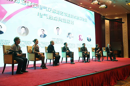 电气热点问题技术探讨环节由欧阳东先生主持,邀请的嘉宾有北京市设计院电气总工孙成群先生,中国设计院电气总工陈琪女士,湖南省设计院副总工、省设计大师孟焕平先生,天津市设计院副总工王东林先生,一舟集团亚洲区总裁谭小敢先生、广州世荣电子公司首席运营官王柳清女士。各位专家分别就城市综合体电气设计的安全、消防用电设备应采用专用的供电回路、规范执行原则、零能耗建筑的技术方案、“互联网+”数据中心基础设施及照明节能解决方案六方面的电气热点问题进行了探讨,让与会人员对建筑电气设计有了更深入的理解,为设计人员提供了新的设计思路,明确设计准则。