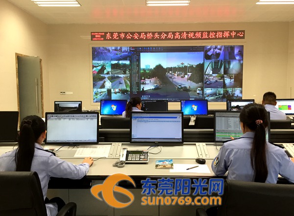 在桥头公安分局的110视频监控中心,一个大型的高清电视墙非常显眼,民警及工作人员正在操作高清视频监控系统,监控全镇各个路口及道路的一切状况。据监控中心的民警介绍,这个是桥头政府投资3000多万元建成的高清视频监控系统,近期正式投入使用,共有高清治安监控点定位119个,其中包括109台高清红外机,10台高清激光红外球机,126台高清枪式摄像机,高清卡口17个,共84车道,高清电子警察99个方向共30个路口。