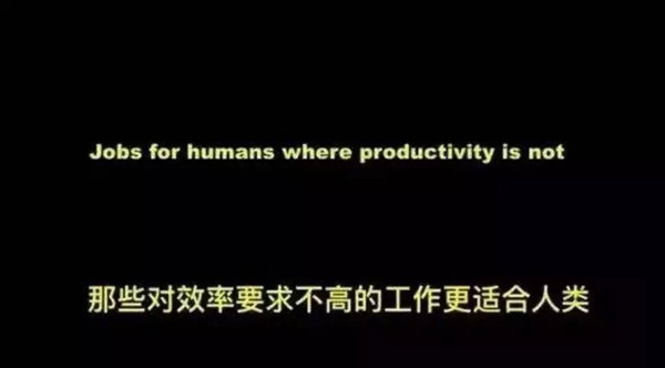 我们去到现场听演出,好的演出价格越来越高,越来越有价值,这和效率无关。对效率要求不高的工作,我们会花费越来越多的钱,比如保姆工作,带小孩的工作,这些都需要经验,这是非常适合人类的。未来,你的工资高低将取决于你能否和机器人默契配合。配合得越好,你的工资就会越高。