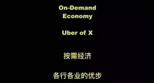 我们根据需求来创造经济,这就是未来的趋势。我们可以通过互联网来实现,像优步这样的服务会渗透到各行各业。试想一下,一个行业原本是需要拥有它,才能享受它,变成现在不需要拥有,就可以享受了,你可以通过取得服务的这种方式来取代拥有这个实物的事情。