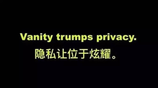 同时我也希望大家看不到我,我有我自己的私人空间,我希望我们是有选择权的。当给他机会选择的时候,通常大多数人选择的是分享这一端,他们会上各种社交网络,希望大家都知道他的信息,这是人的天性。另一方面他希望大家了解他所做的,希望大家待他如一个特别的个体。如果他从这个社交网络上获得了一些好处,满足了心理需求,他就会开心,但是同时他又不希望在这个社交上面失去他自己的隐私,那么其实他们是隐私让位于炫耀的。